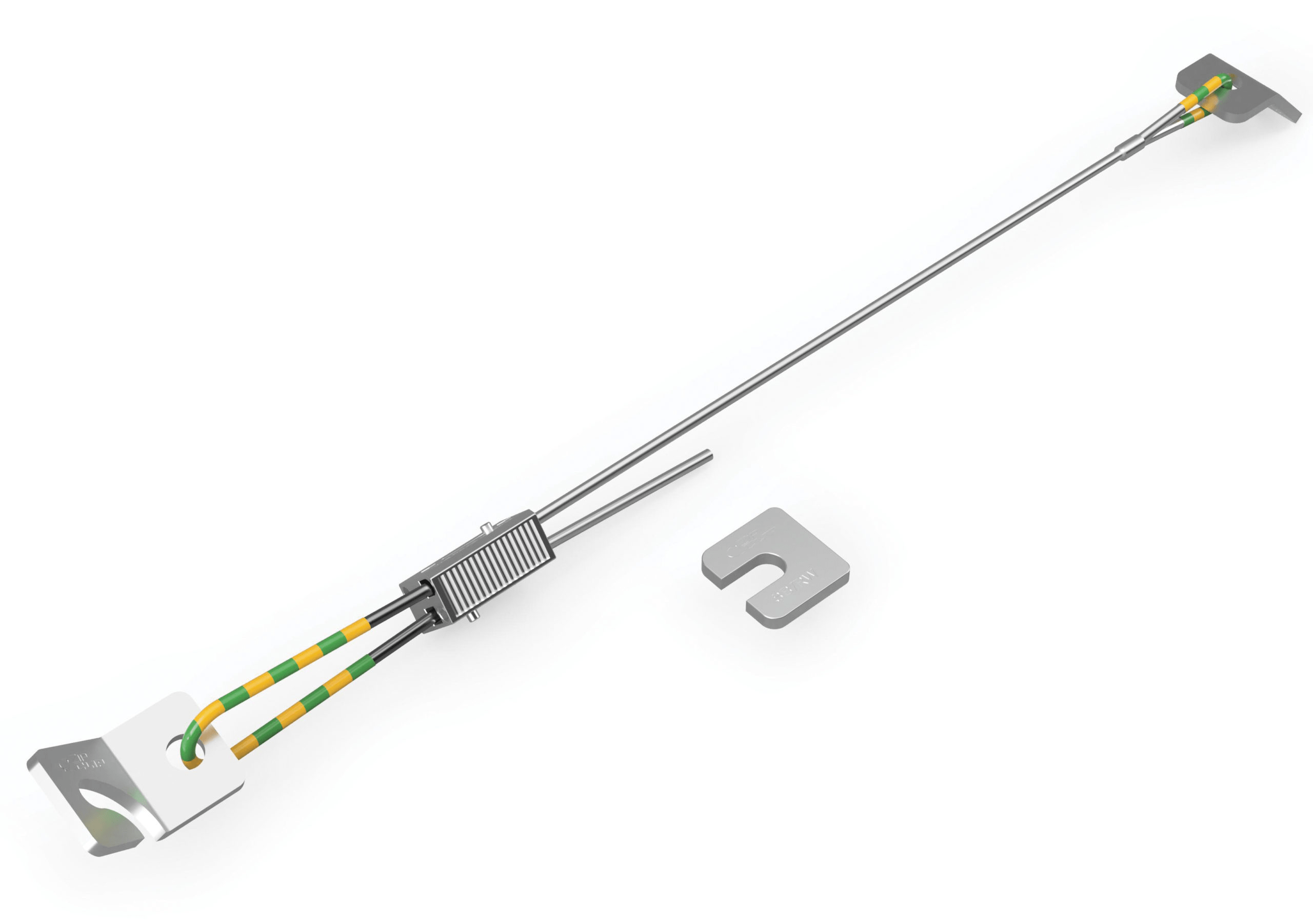 - Færið vírinn í gegnum Zip-Clip jarðskjálftalásinn og setjið á viðbótar PVC ermi.